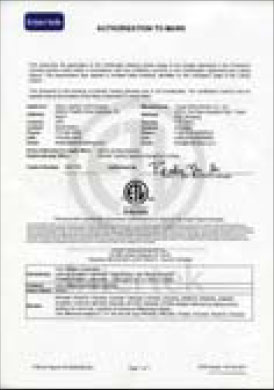 BG certificate issued by Intertek